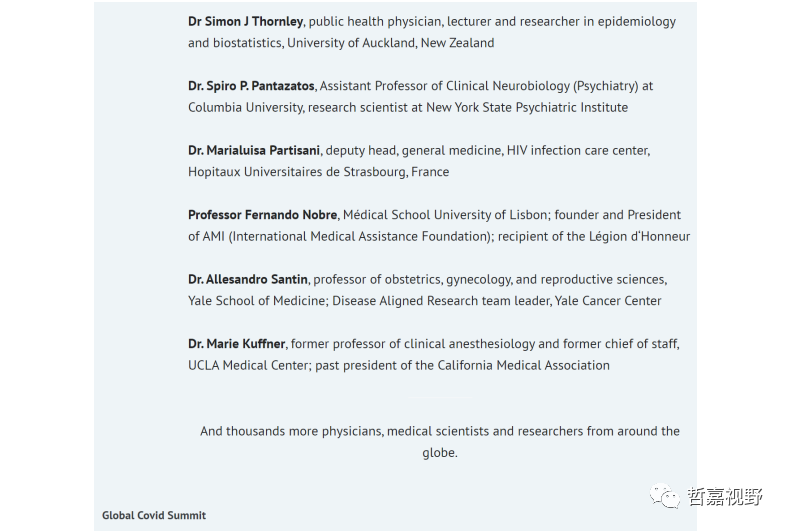 (以上只是部分医生的签名,医生签名名单的最后一行是:还有成千上万来自全球的更多的医生,医学科学家,研究人员。)